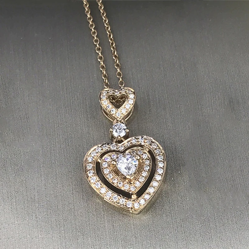 Huitan Luxury Heart Pendant Wedding Necklace for Women Silver Color/Gold Color Inlaid Shiny Cubic Zirconia Fashion Neck Jewelry