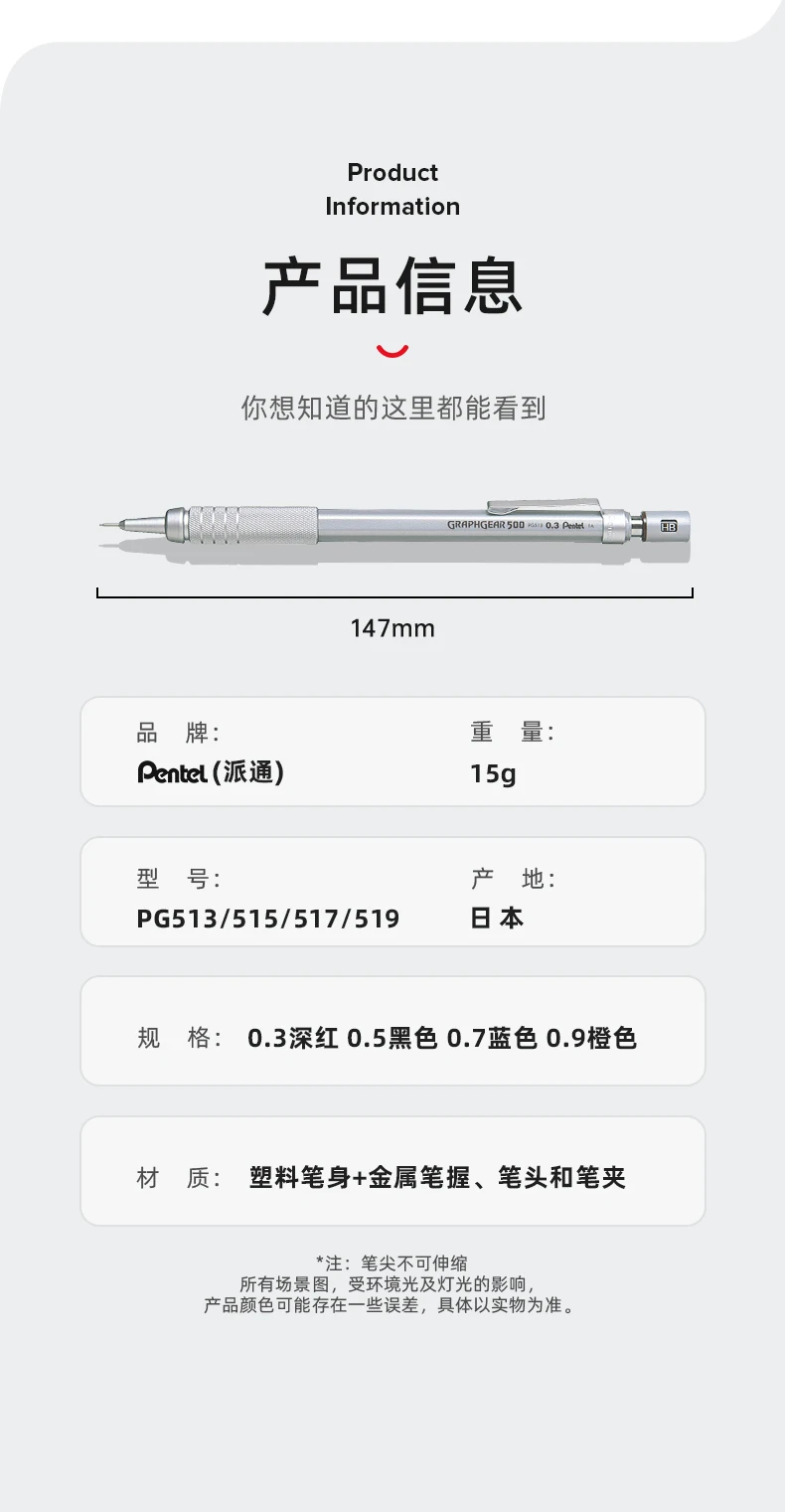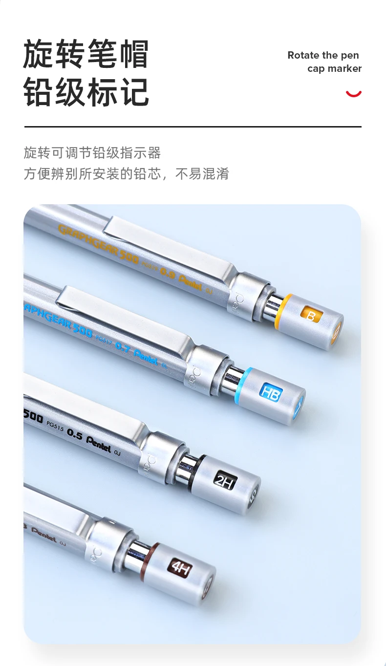 Japan Pentel Graph Gear Drafting Metal Mechanical Pencil PG515 Drawing Automatic Pencil 0.3/0.5/0.7/0.9mm School Stationery