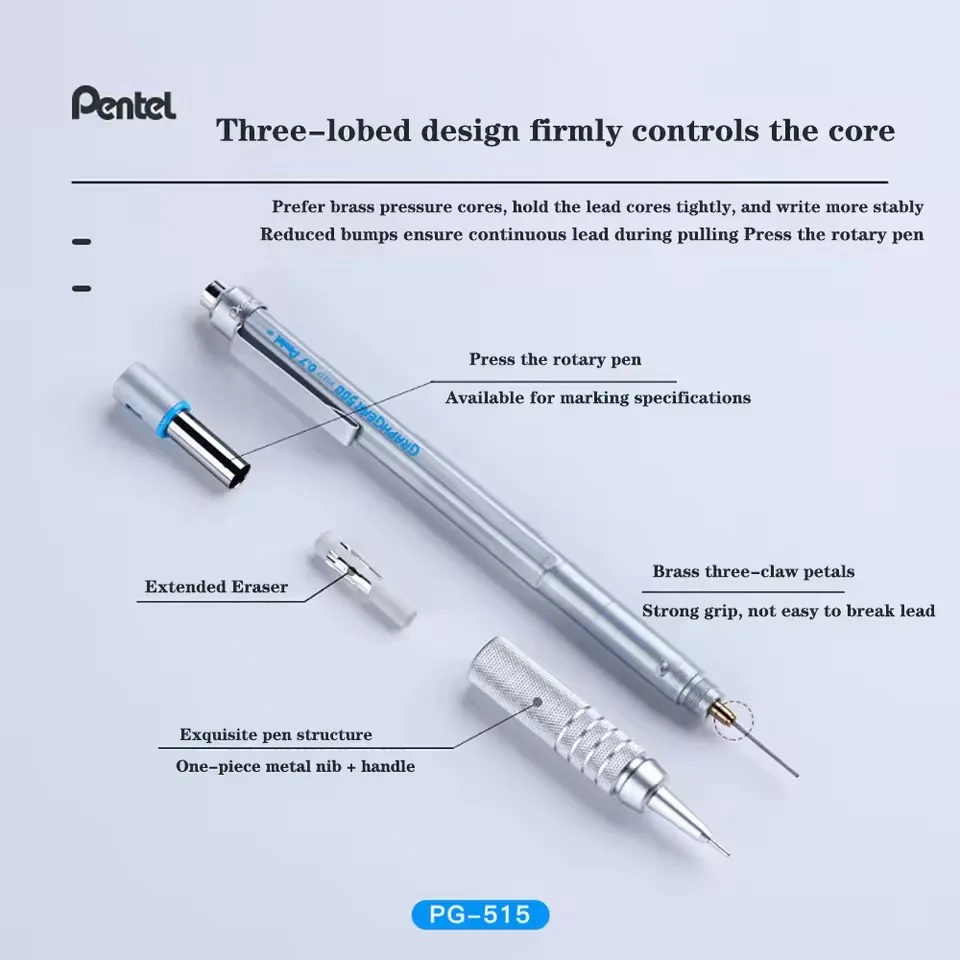Japan Pentel Graph Gear Drafting Metal Mechanical Pencil PG515 Drawing Automatic Pencil 0.3/0.5/0.7/0.9mm School Stationery