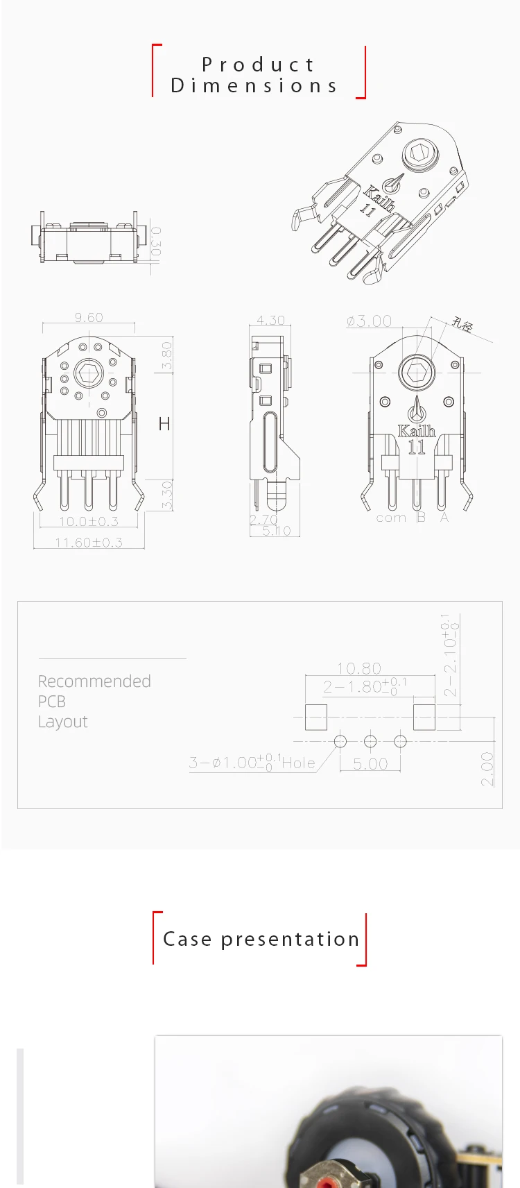 Kailh 5/7/8/9/10/11mm Rotary Mouse Scroll Wheel Encoder 1.74 mm hole 20-40g force for PC Mouse alps encoder