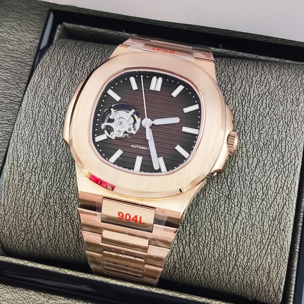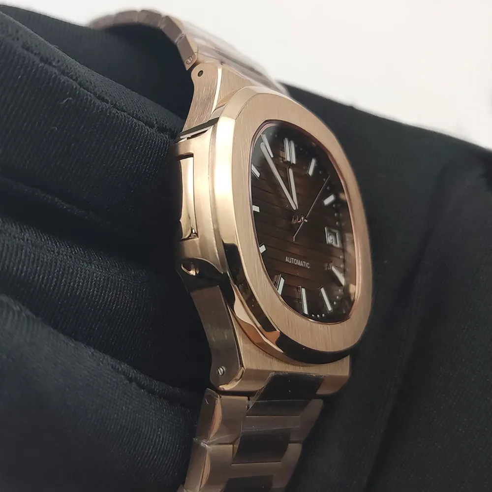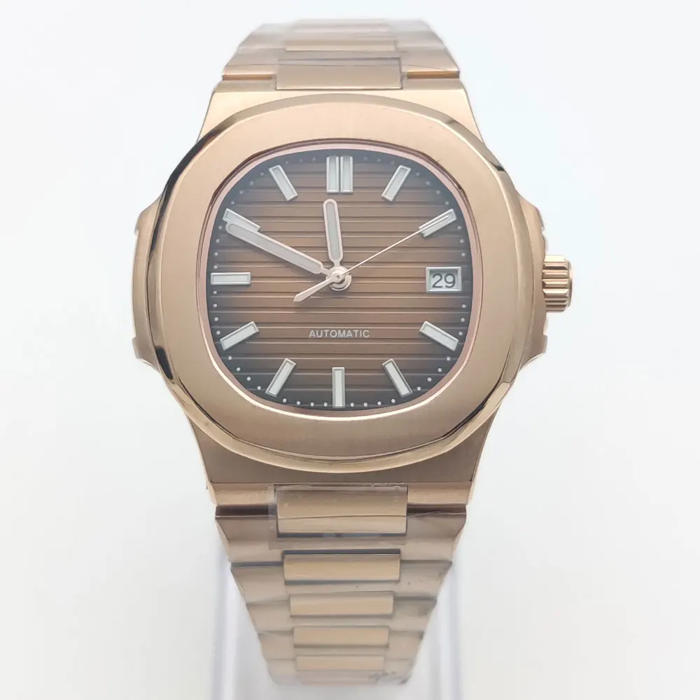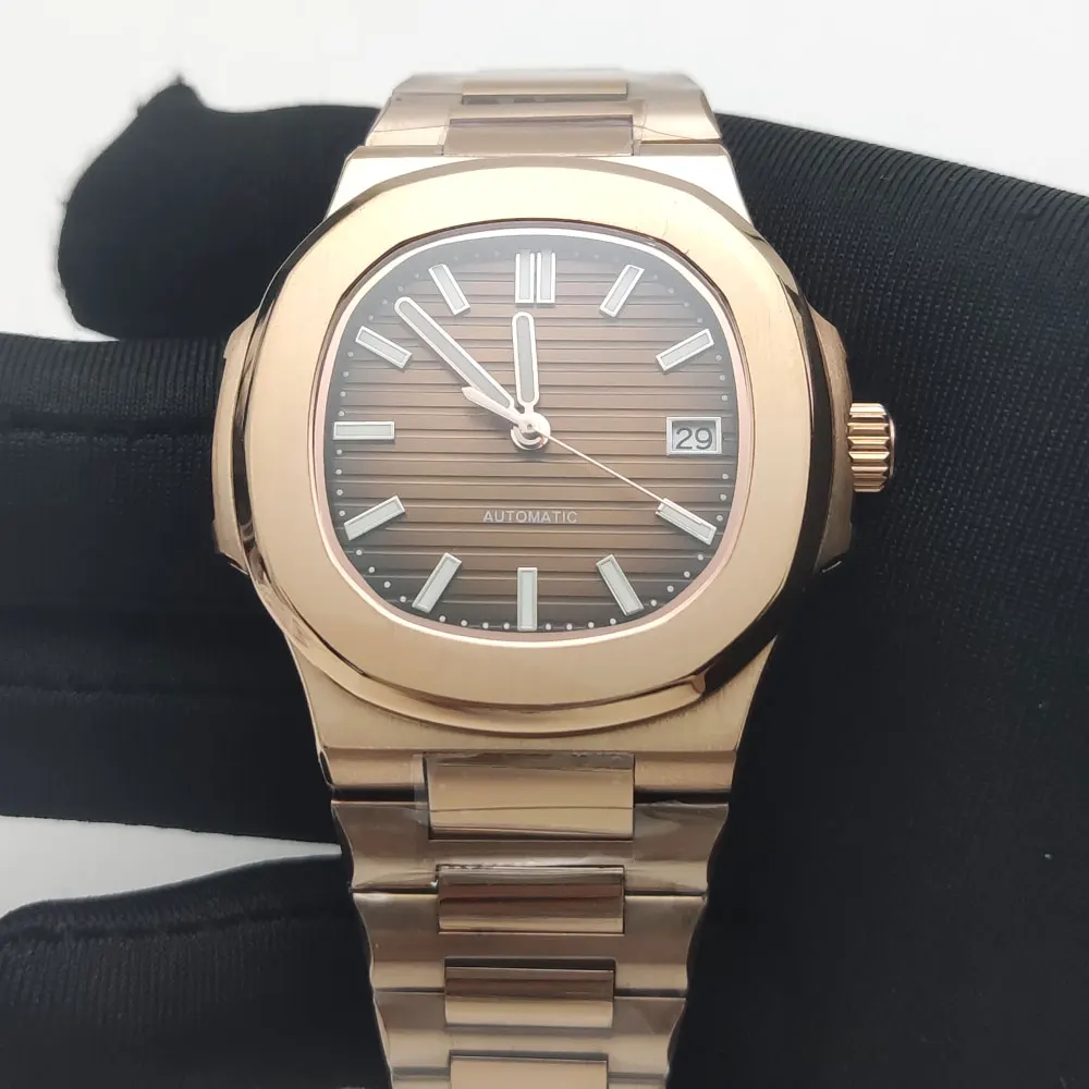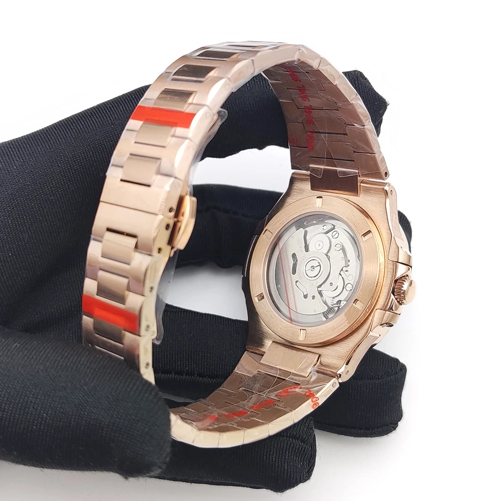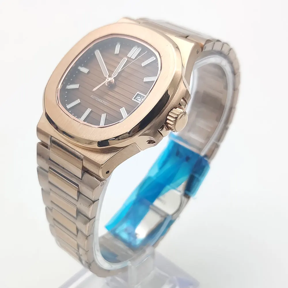 Luxury Rose Gold 40MM Square NH38 Movement Automatic Mechanical Men’s Watch Sapphire Crystal Date Stainless Steel Strap