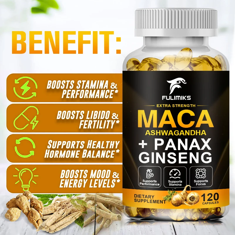 ✅ POWER OF MACA + ASHWAGANDHA + GINSENG EXTRACT IN ONE – The Highly Concentrated Form of FULIMIKS Maca + Ashwagandha + Ginseng , a powerful blend of 10000mg Maca Root Capsules (20X MORE STRENGTH) + 1400mg Korean Panax Ginseng (10X MORE STRENGTH) + 6000 mg of ashwagandha (10X MORE STRENGTH) , deliver a pure, potent dose than other best selling brands.
