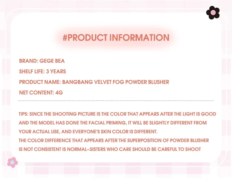 Be the first to review “Makeup Gege Bear Bang Bang Soft Mist Blush Natural Lifting Matte Swelling Color Supplying Long-lasting Makeup Wholesale Cosmetic”