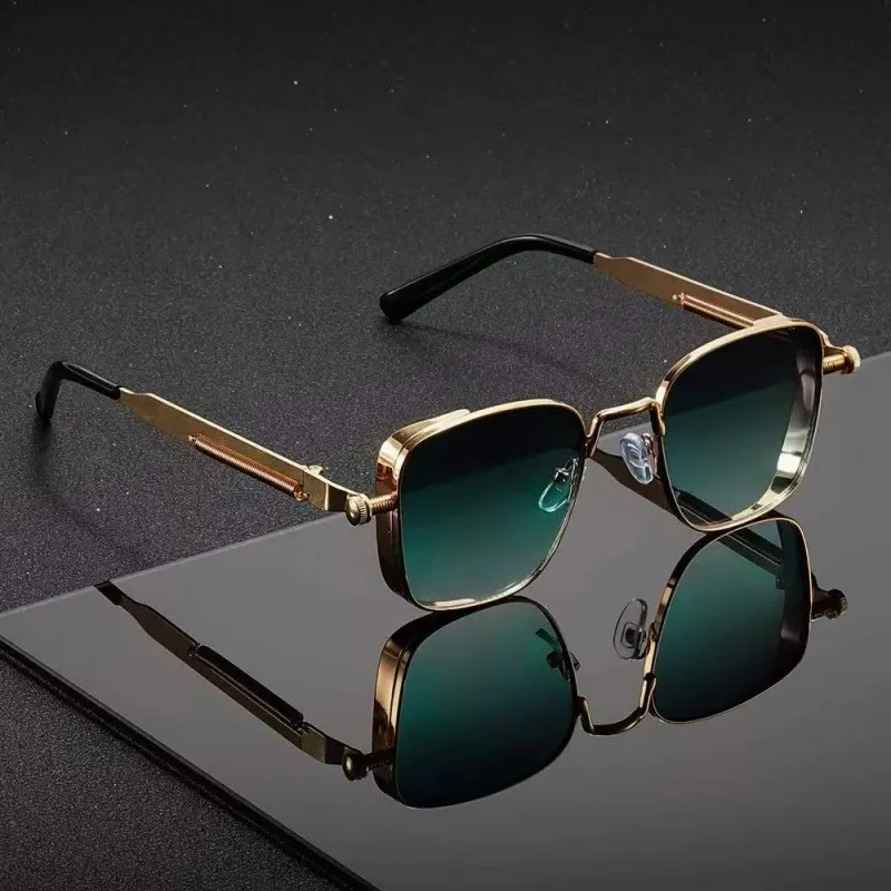 Men Driving Sunglasses Vintage Steampunk Square Sunglasses Metal Frame with Spring Hinges Women Eyepiece Trendy Driver Glasses