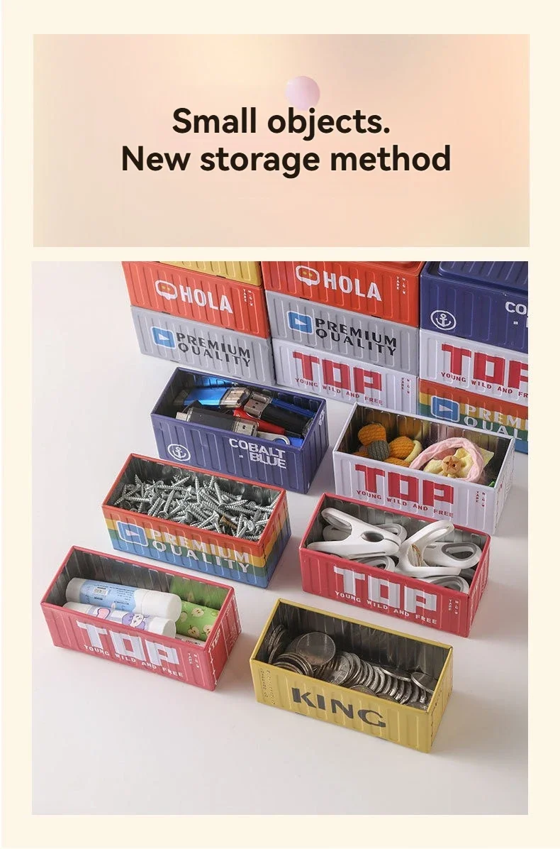 Mini Container Small Iron Box Make Old Miniature Models Scene Props Office Ornaments Stackable Creative Desktop Organizer