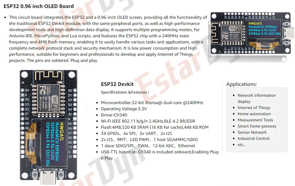 Be the first to review “NodeMCU ESP8266 V3 Development Board With 0.96 Inch OLED Display CH340 ESP-12F WiFi Module TYPE-C USB For Arduino/Micropython”