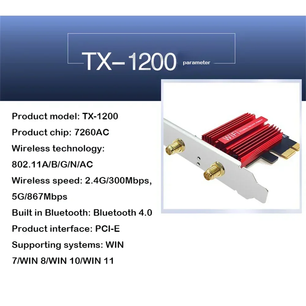 PCI-E WiFi 5 Network Card Wireless Adapter AC1200 Dual Band 2.4G/5GHz For Bluetooth 4.0 Desktop Laptop Windows 7/8/10/11