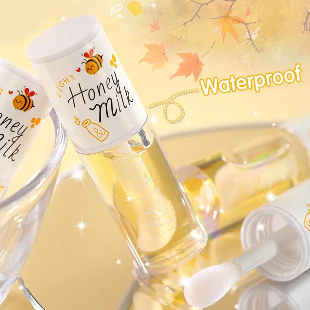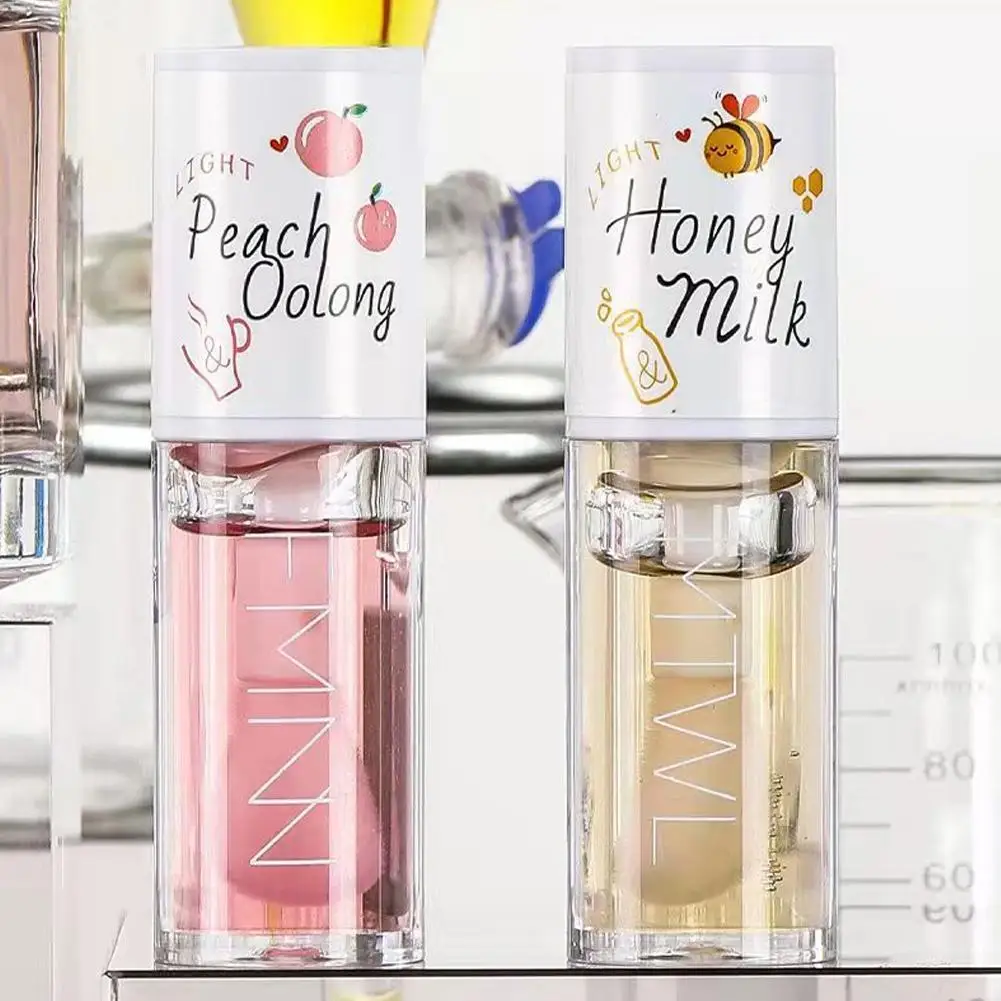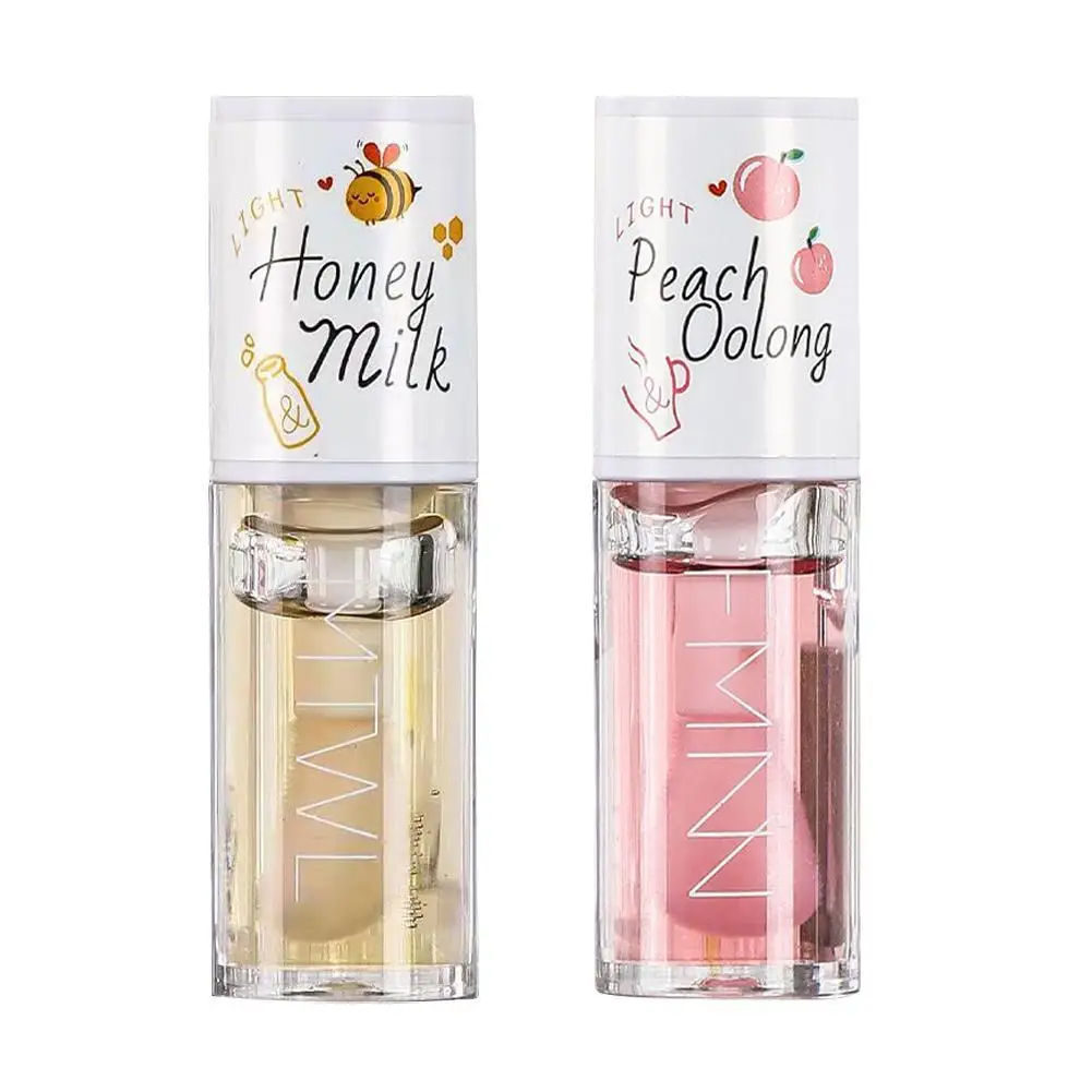 Peach Milk Honey Lip Oil Relieves Dry Moisturizing Lip Gloss Fades Lip Lines Water Light Lips Big Brush Head Cute