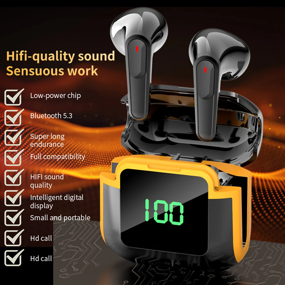 PRO90 Bluetooth 5.3 Headphones TWS Wireless Earphones with LED Display Stereo Headset Touch Control Earbuds Noise Reduction