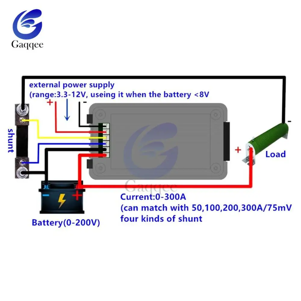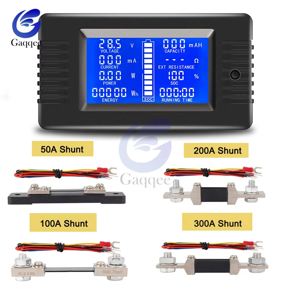 Measuring range: 0-300A can set 50A, 100A, 200A,300A four range depend on the external shunt, the factory default is 100A.