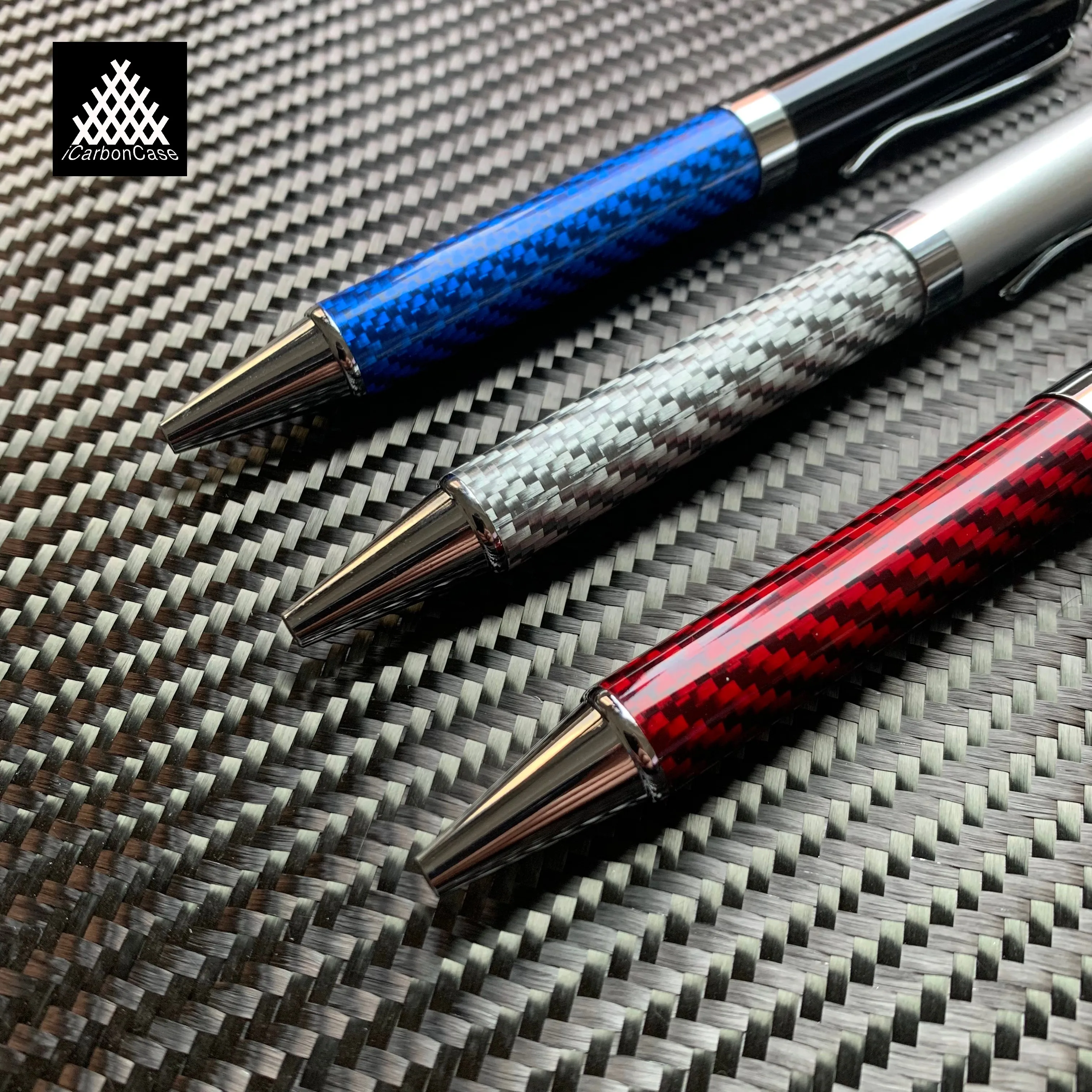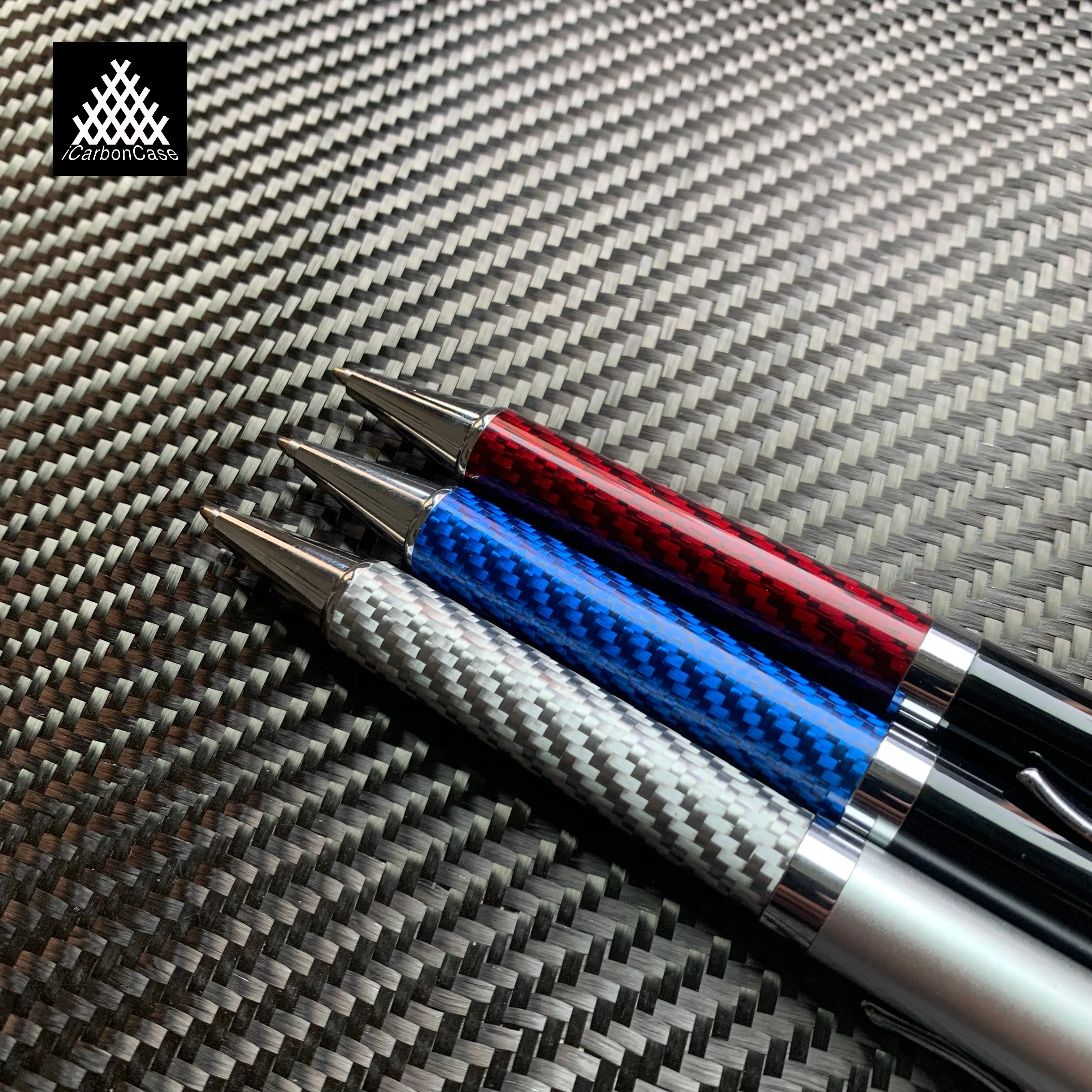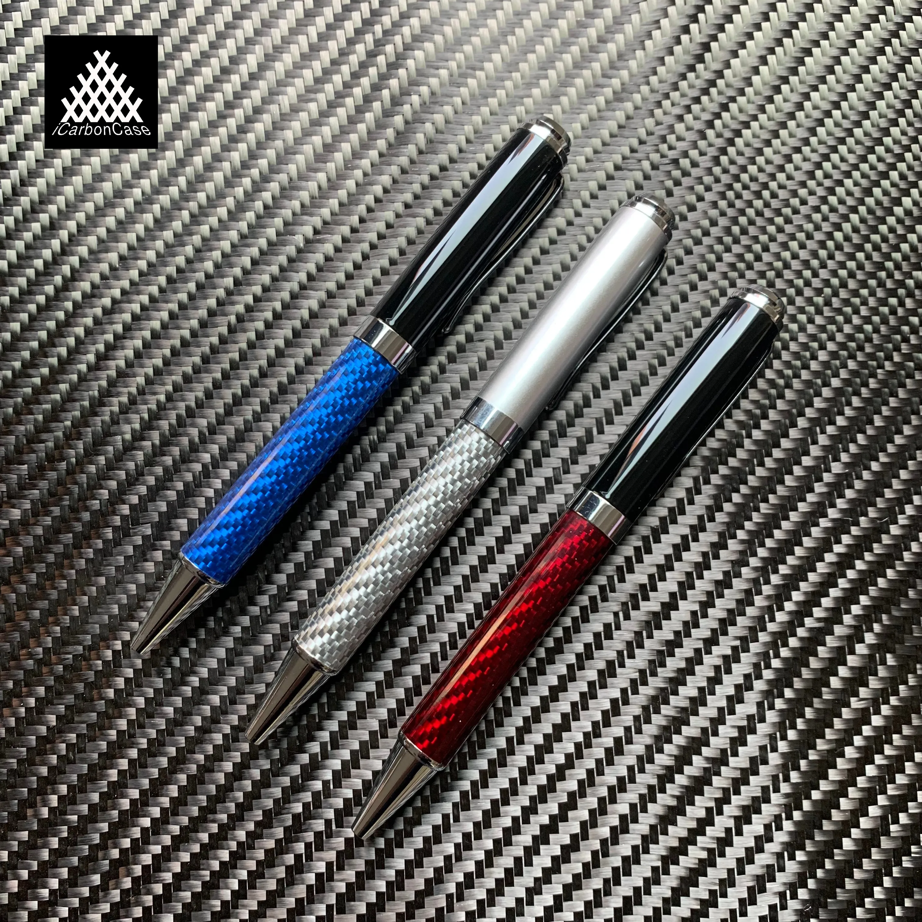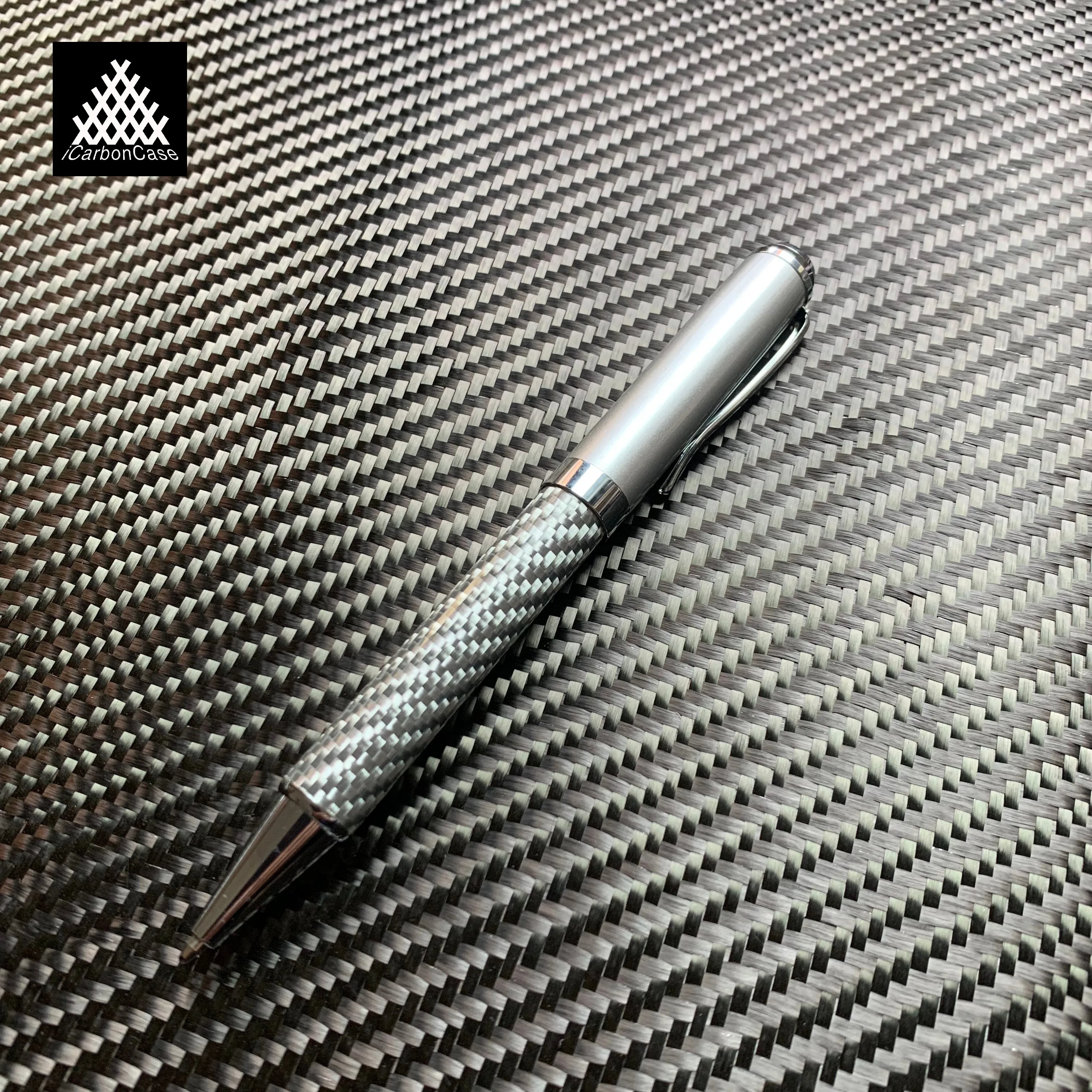 Real Woven Carbon Fiber Metal Black Ballpoint Pen Office Student Stationery Signature Pen