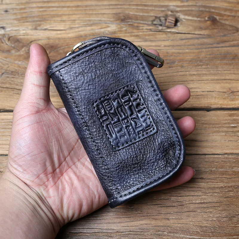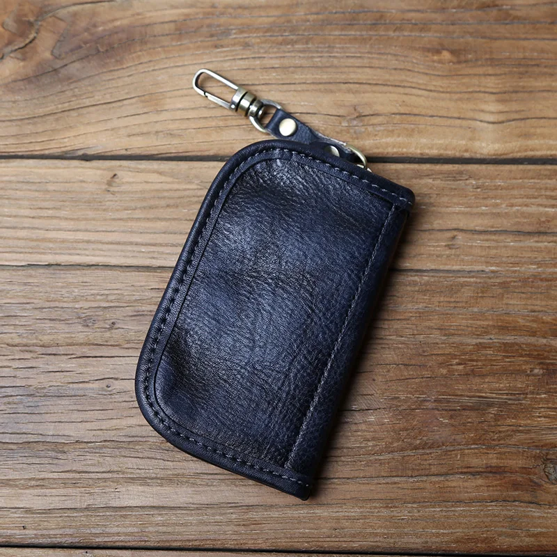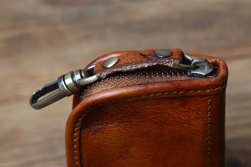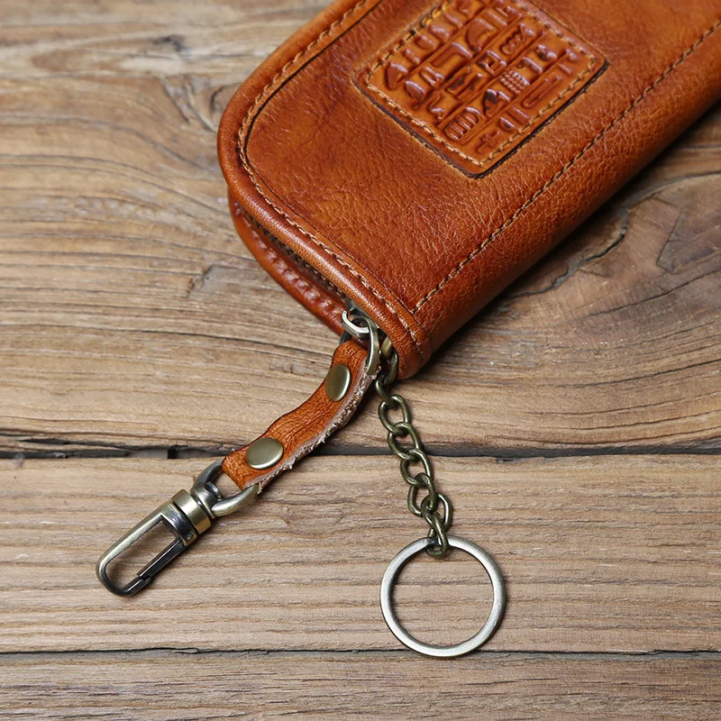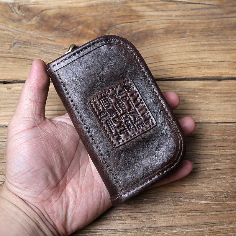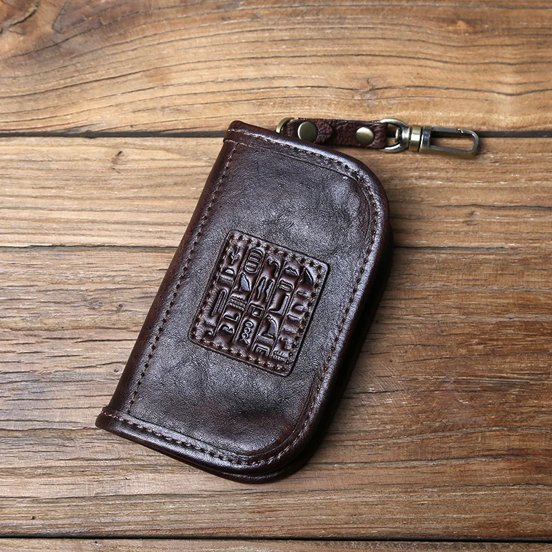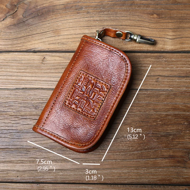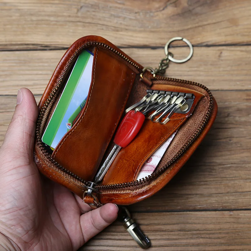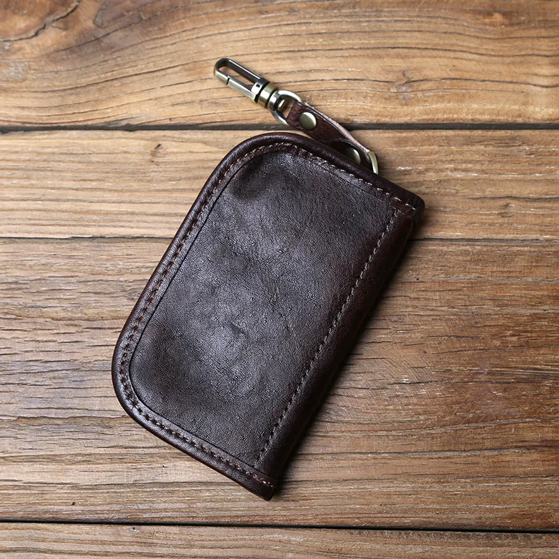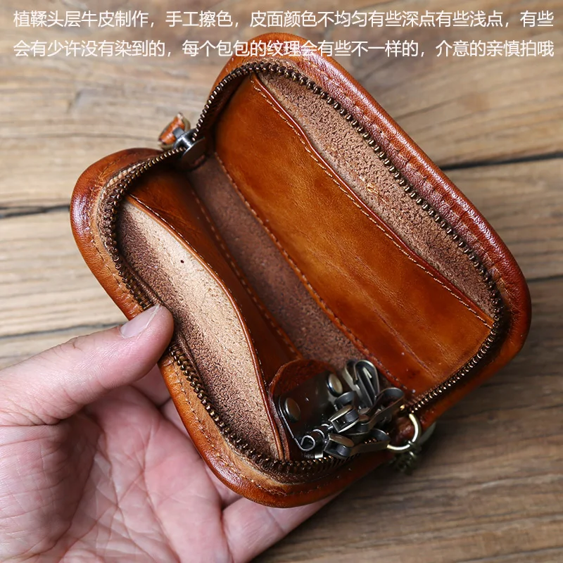 Retro Leather Men’s Car Key Bag Top Layer Cowhide Multi-Function Waist Bag Coin Purse Brown Ladies Card Wallet NZPJ