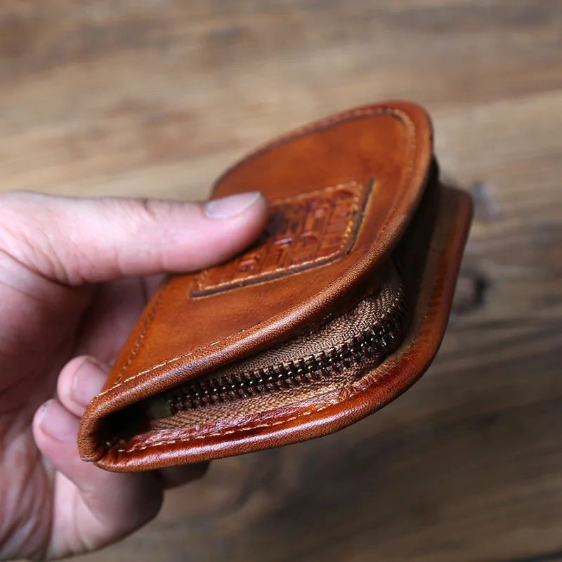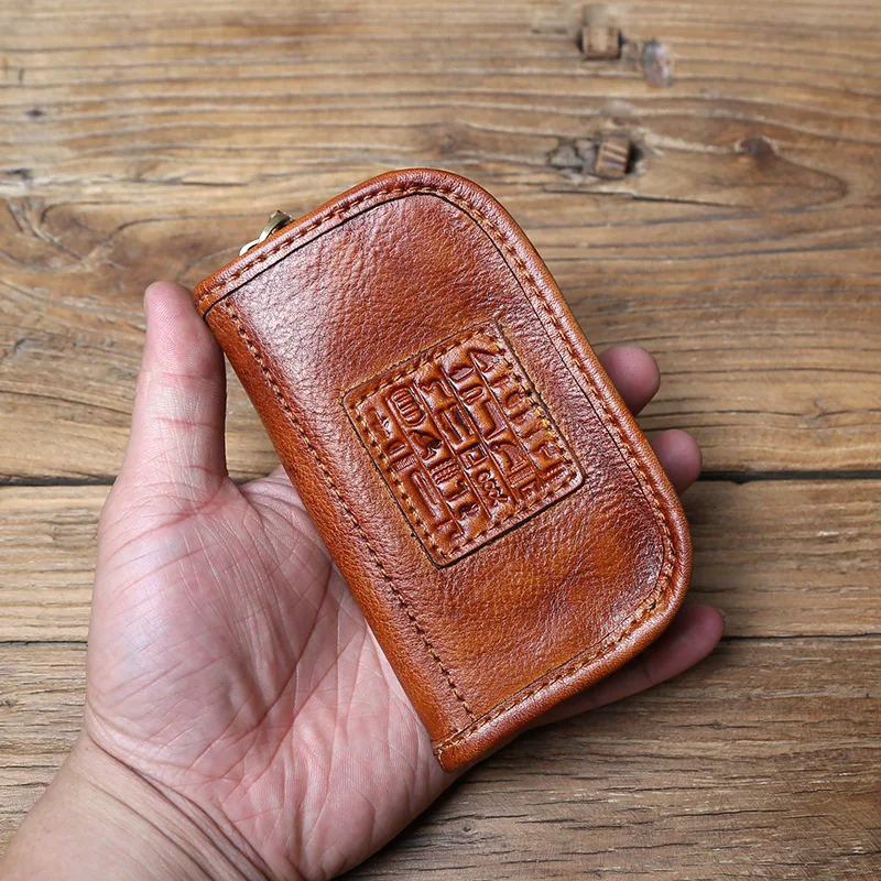 Retro Leather Men’s Car Key Bag Top Layer Cowhide Multi-Function Waist Bag Coin Purse Brown Ladies Card Wallet NZPJ
