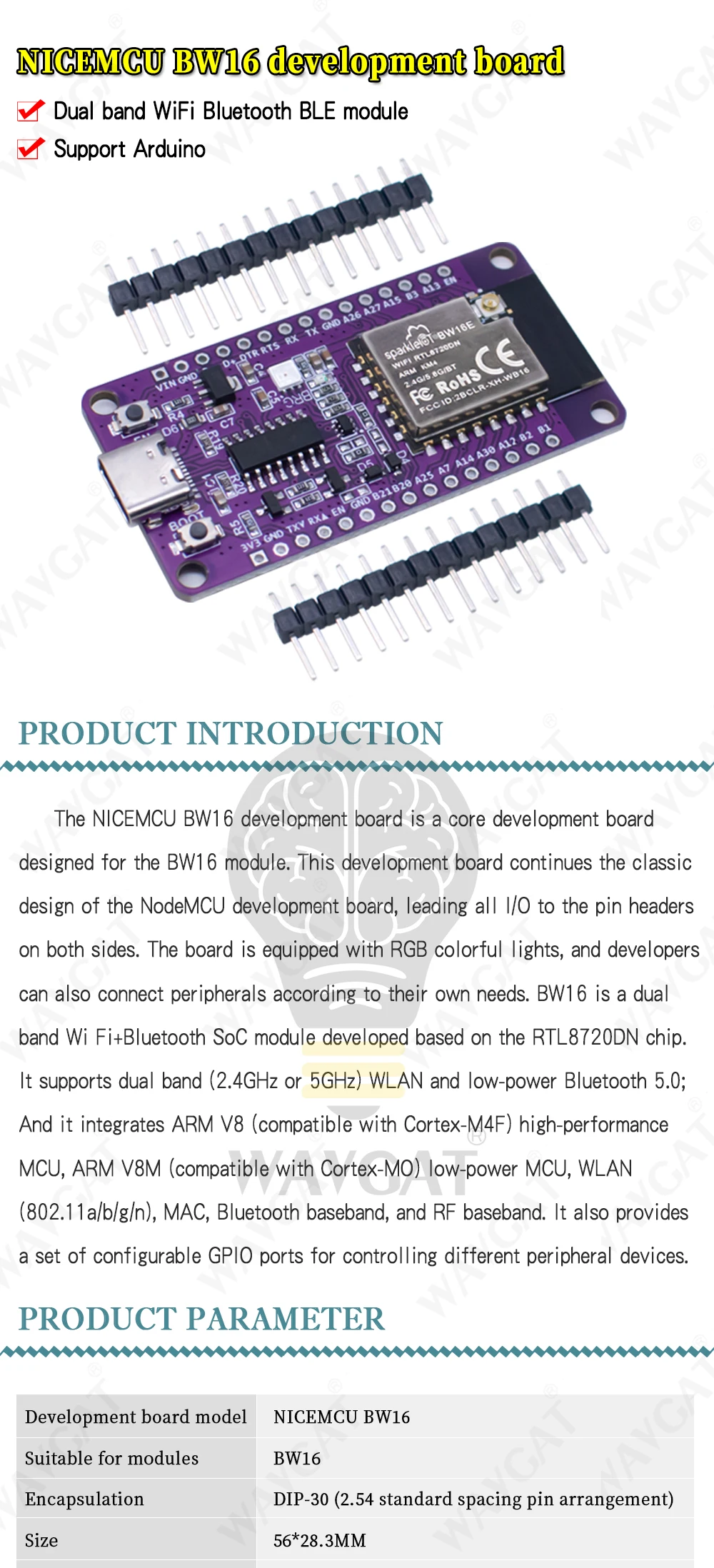 RTL8720DN dual-band WiFi Bluetooth BLE module NICEMCU BW16 development board supports arduino