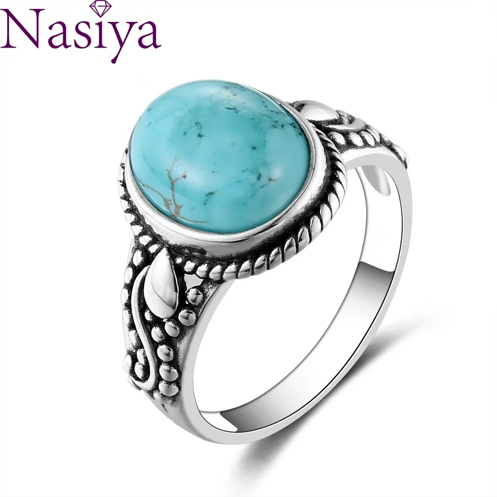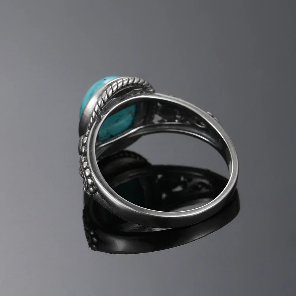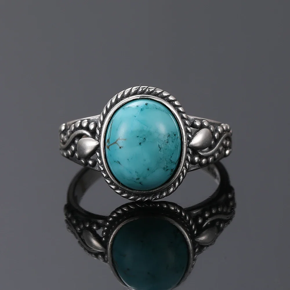 New Fashion Oval High Quality Natural turquoise Rings For Men Women Silver Trendy Jewelry Wholesale Dropshiping Gifts