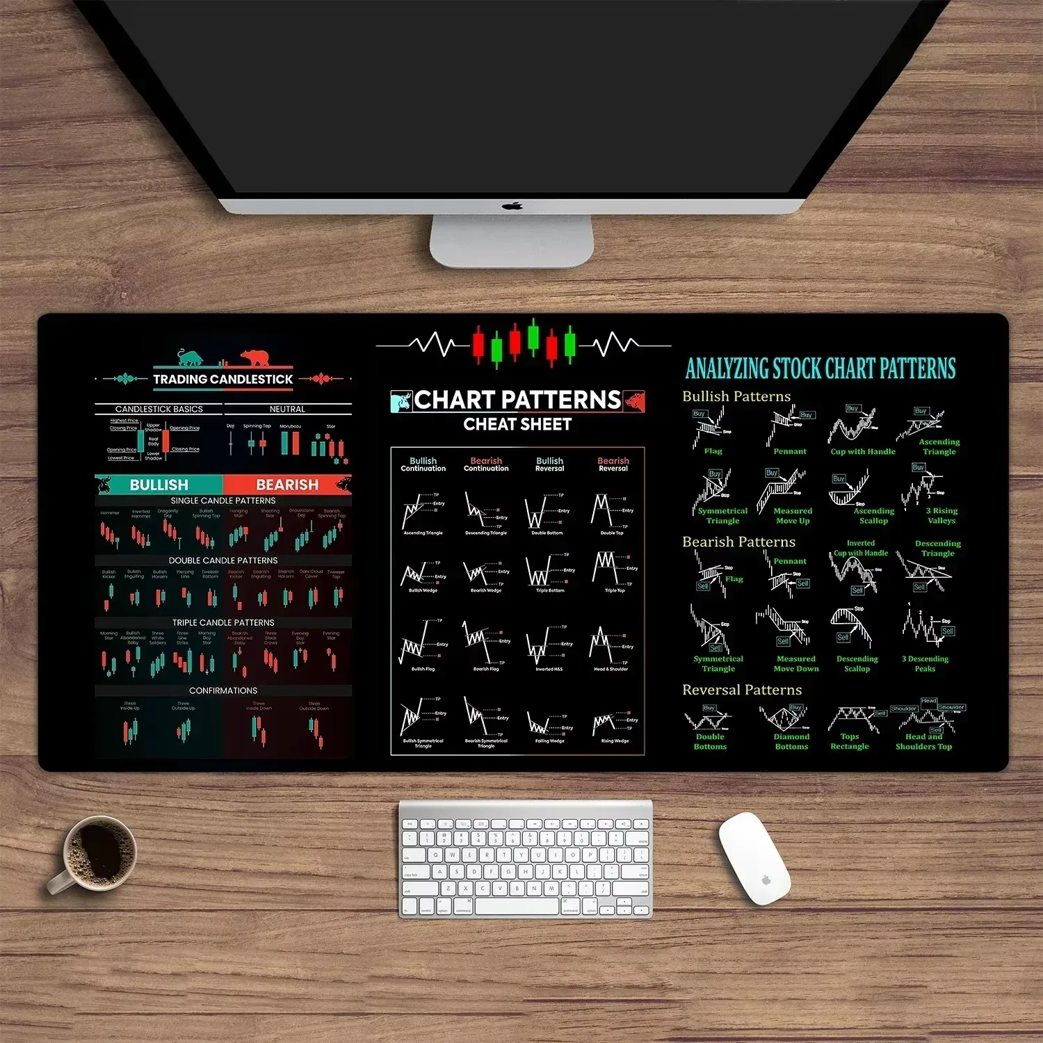 Stock market chart pattern Forex mouse pad Locking Edge Table Keyboard Non-Slip Mausepad Computer Accessories Desk Mat 900X400