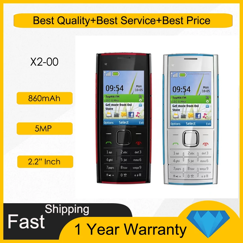 Unlocked Original x2-00 Loudspeaker Bluetooth Mobile Phone Russian Arabic Hebrew English Keyboard Made in Finland