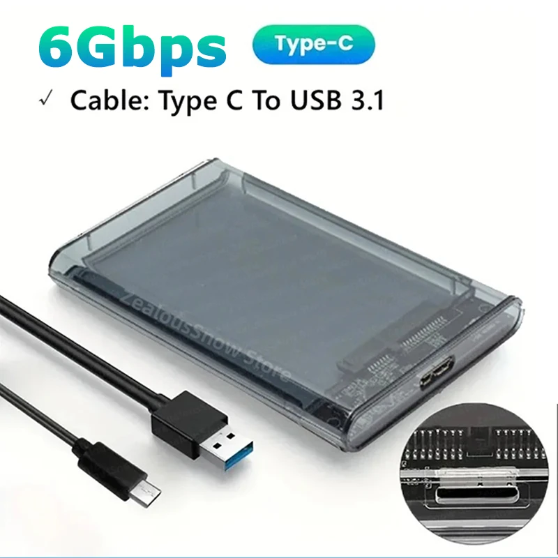 USB3.1 External HDD Case 2.5 Inch Clear Hard Drive Enclosure Fast 5Gbps USB to Micro Type-C SATA HDD SSD Harddisk Storage Case