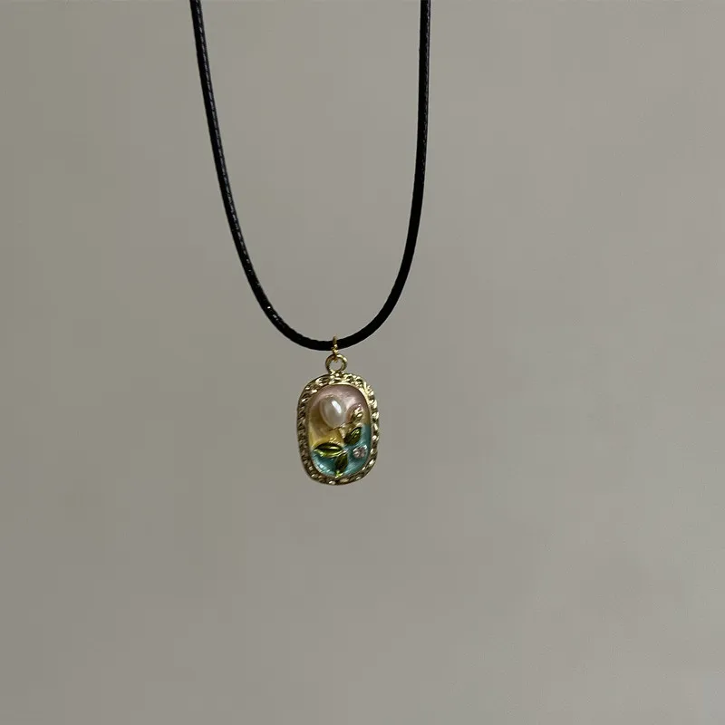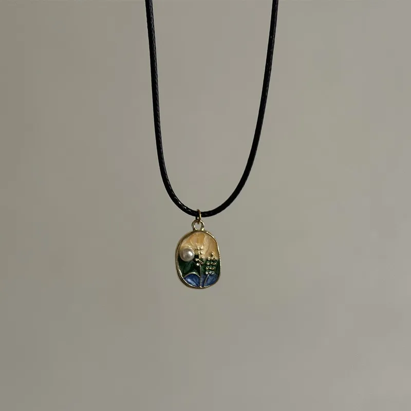 Be the first to review “Vintage Drip Oil Flower Sun Pendant Necklace Leather Rope”