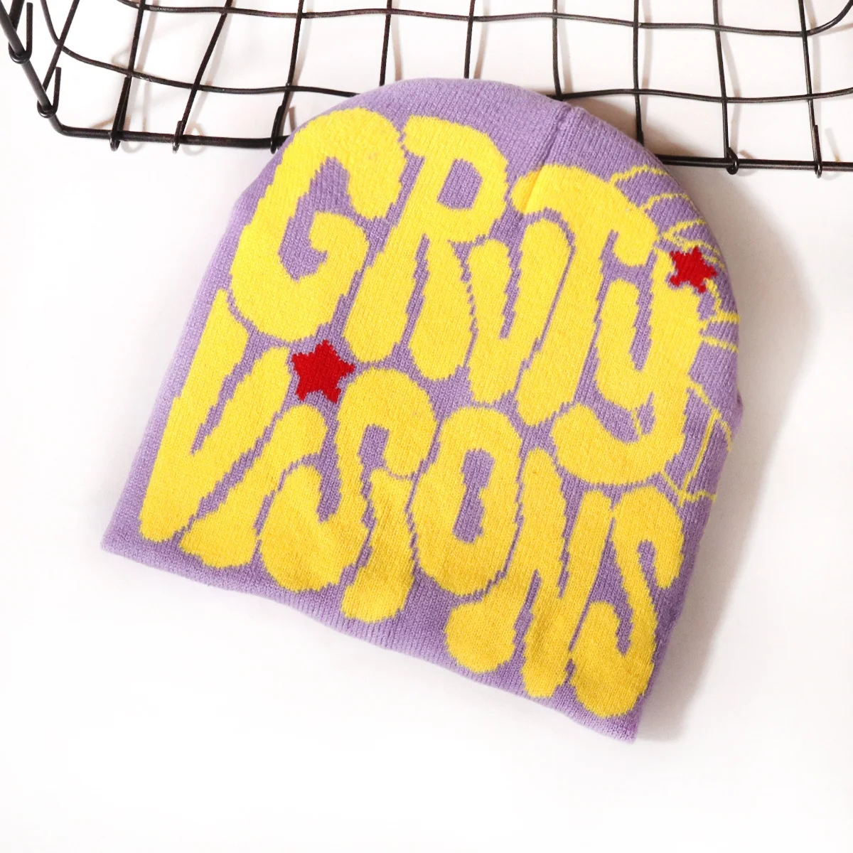 Y2K Colorful Fashion Letter Beanie Hat Winter Warm Five Star Turban Cap Perfect Spider Web Knitted Hat for Daily Wear