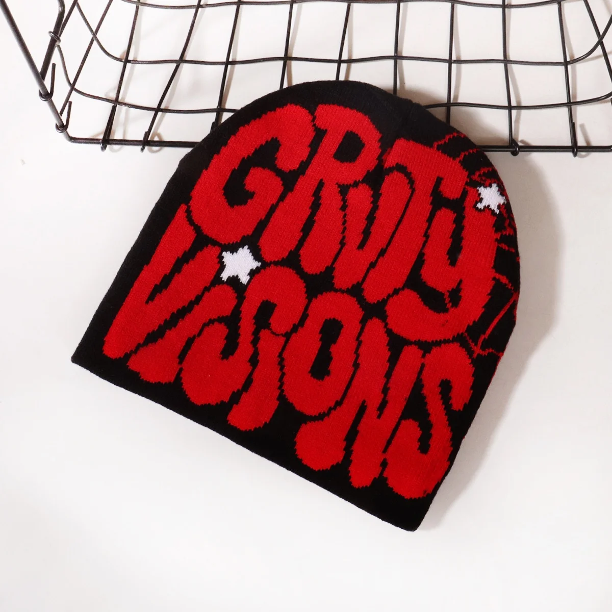 Y2K Colorful Fashion Letter Beanie Hat Winter Warm Five Star Turban Cap Perfect Spider Web Knitted Hat for Daily Wear